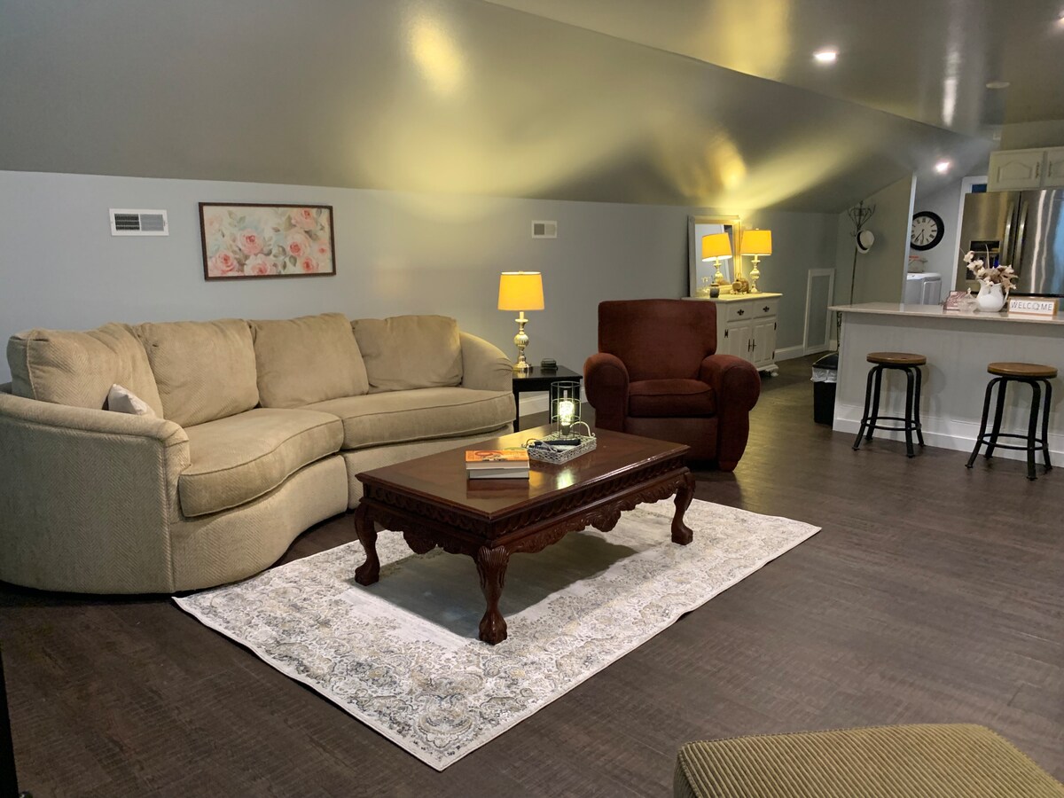 This stylish place to stay is perfect for group trips. Has all the amenities of home, conveniently located and very spacious. Queen Size bed, additional air mattress for the young ones. Large open kitchen/living space with a plenty of sitting areas for conversation or TV. Equipped with stove, microwave, refrigerator, washer, dryer, ironing board, iron and Keurig coffee maker. Extremely clean, ready for the business or personal traveler.