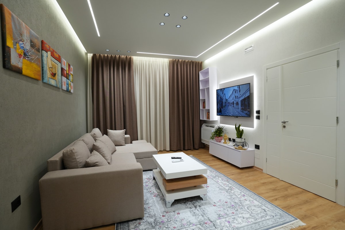 Experience comfort at Grey Stone Suites, two modern apartments side by side in Gjirokastër’s historic center, steps from the Old Bazaar and Castle. Perfect for couples, friends, or families, they host up to 6 guests in total. Enjoy sleek design, cozy vibes, and top amenities in a peaceful setting where tradition meets luxury. Whether solo or in a group, your stylish escape awaits. Book now and discover Gjirokastër in a truly unique way!