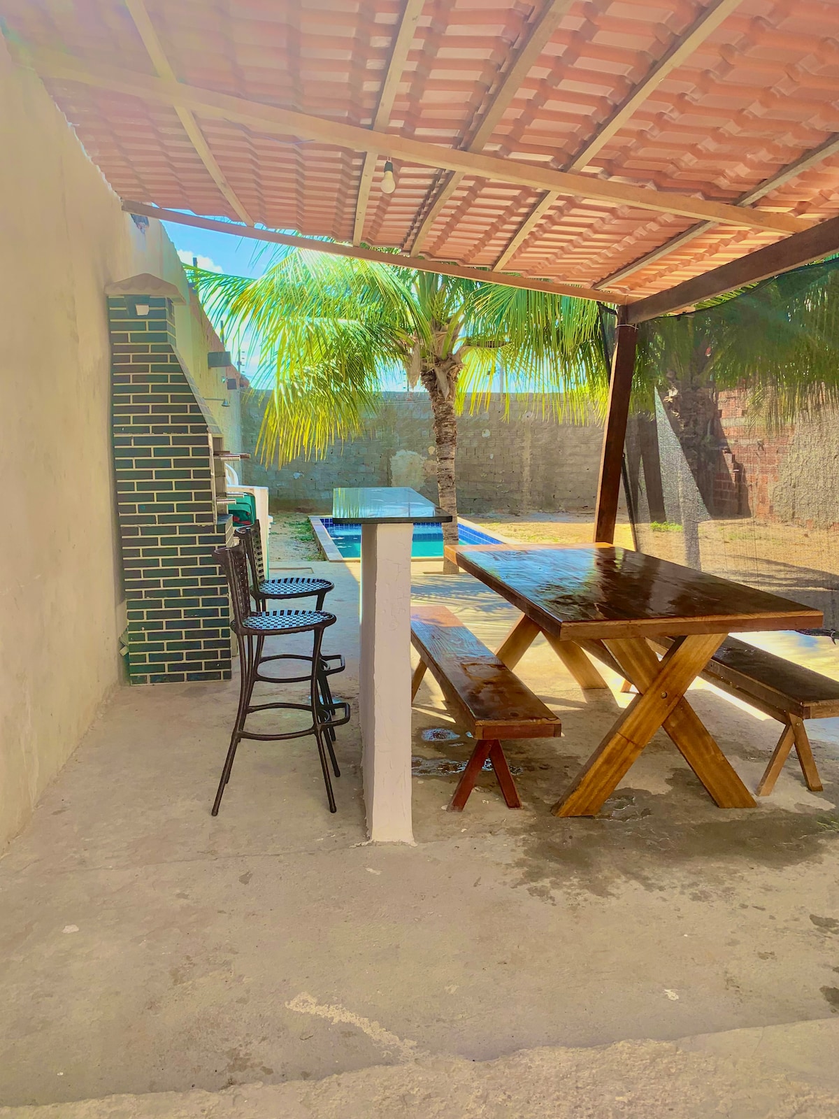 O espaço é bastante amplo e a área de convivência é aberta, com muito verde... um amplo estacionamento... coqueiros, mangueiras, limoeiros, ciriguelas são algumas das fruteiras no local. O espaço é privativo aos hóspedes e exclusivo para a quantidade informada no momento da reserva. Visitas são aceitas mediante taxa adicional e combinado previamente com os anfitriões.