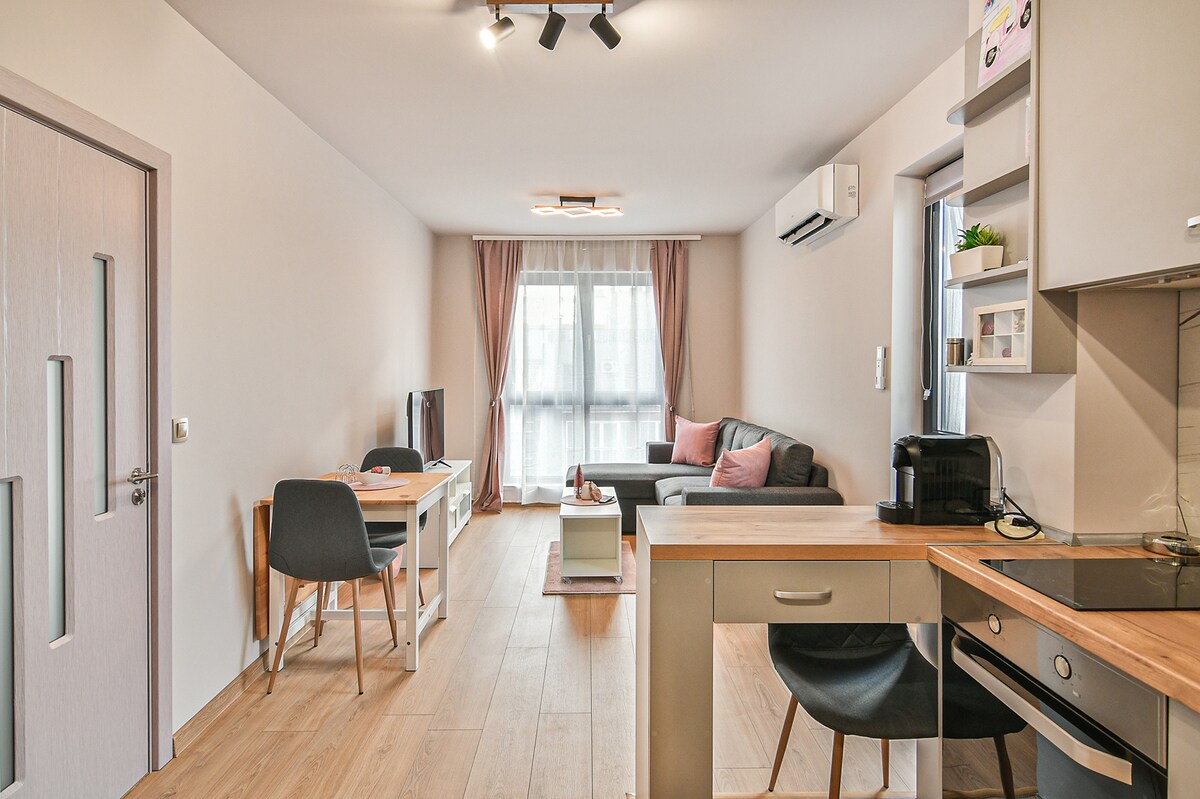 Enjoy a comfortable stay in this charming 1-bedroom apartment, featuring a cozy living room and a fully equipped kitchen — perfect for short or long stays. Located in a quiet residential complex with a kids' playground and walking paths, it's ideal for families or couples. Just a short walk to Grand Mall Varna and the main bus station, this is a convenient and relaxing base to explore the city!