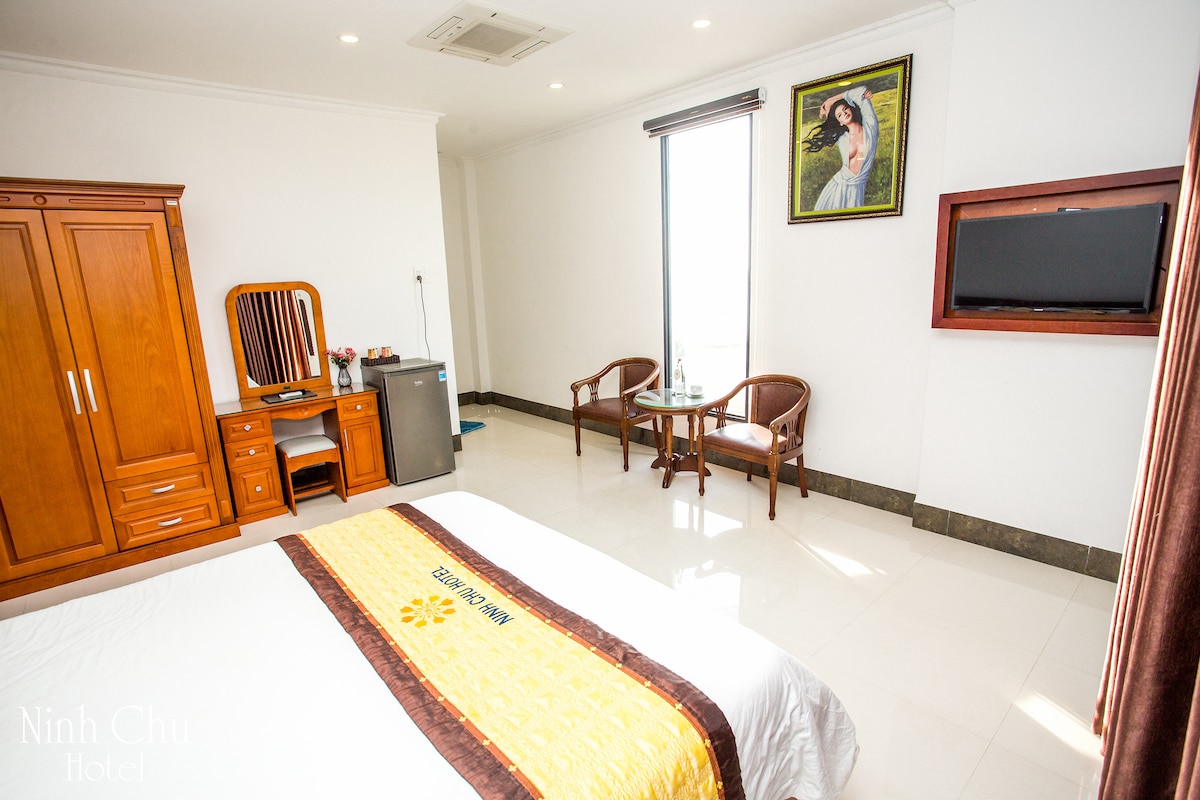 O hotel está localizado no coração da cidade. É o lugar mais movimentado, cheio de diversão, serviços de jantar e muito conveniente para viajar para atrações turísticas famosas da província de Ninh Thuan. A 5 minutos do mar de mota, a apenas 25 minutos da Baía de Vinh Hy, a 20 minutos de Mui Dinh