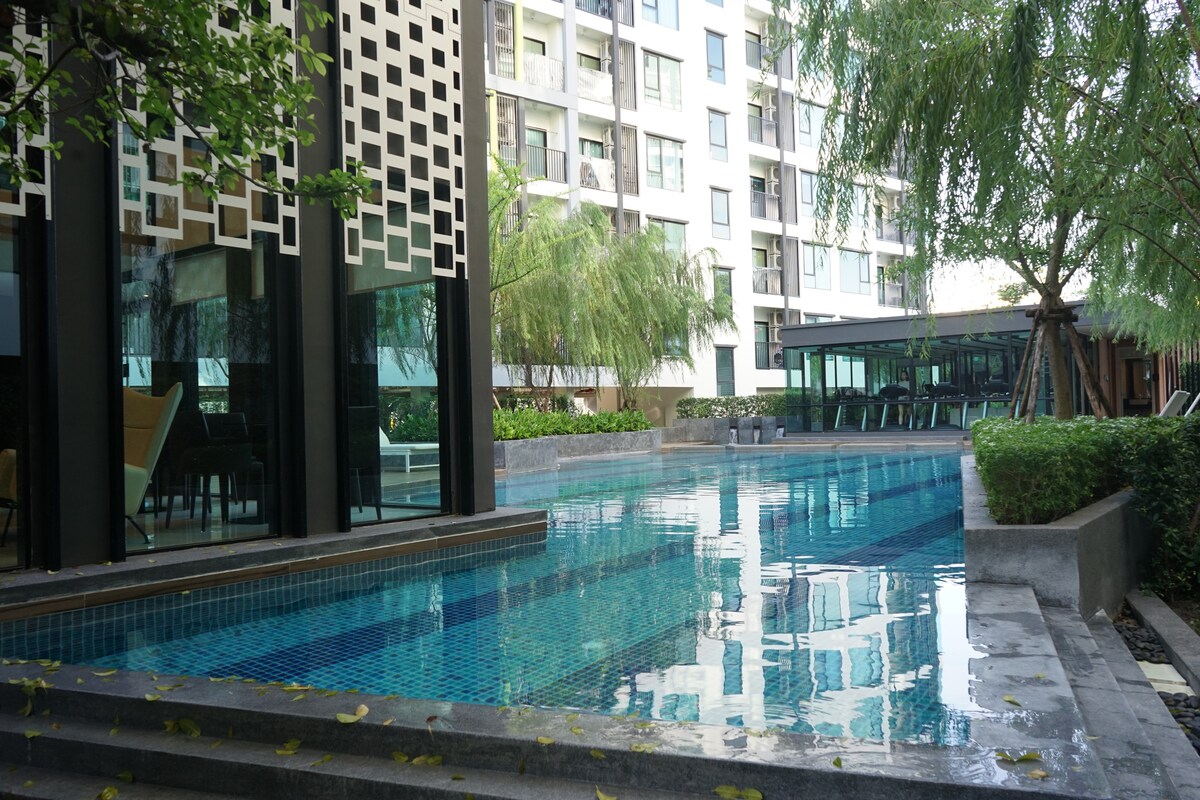 1BR tranquilo • Transporte BTS • Ambiente de resort
