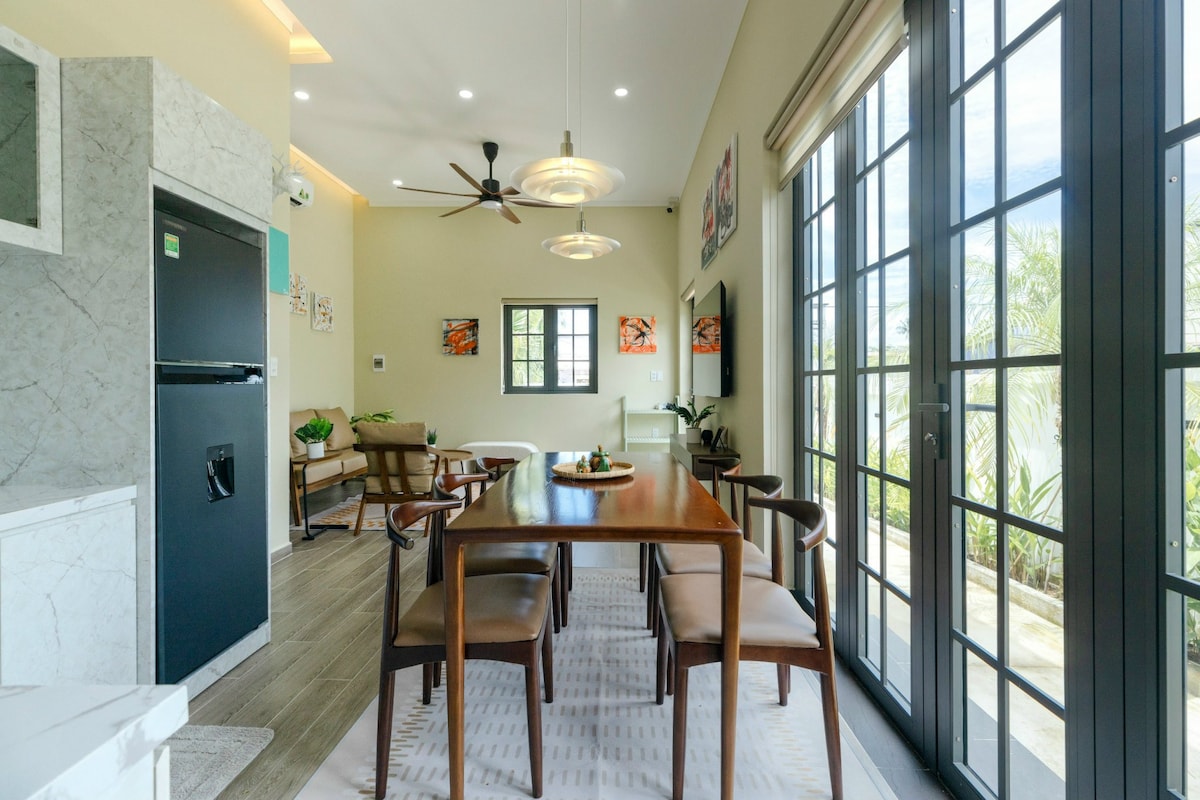 A nova moradia está totalmente equipada para famílias que planeiam viajar para Phu Quoc Pearl Island, incluindo: - 3 Quartos - Cozinha totalmente abastecida - Grande sala de estar - Piscina privada confortável - Ginásio gratuito. - Free Kid Club. - Desfrute da incrível praia que fica a apenas 700 m da villa. - Localizado em Long Beach - a mais bela vista para o pôr do sol. Distâncias: - A apenas 8 minutos do aeroporto - 12 minutos até ao centro de Phu Quoc, Ham Ninh, An Thoi - A 15 minutos do teleférico Hon Thom, Praia de Kem, Praia de São.