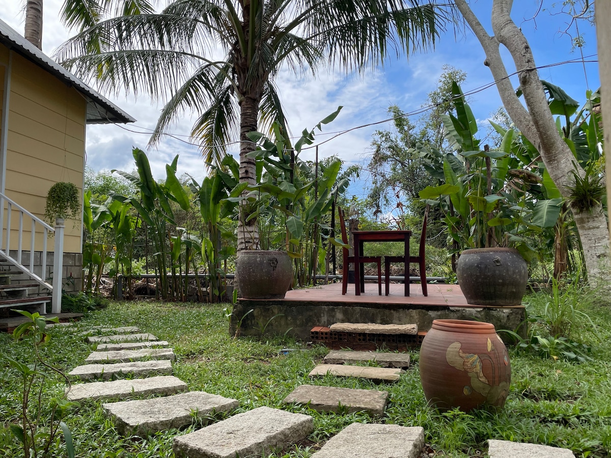 A casa possui 2 quartos, 2 banheiros, varandas na frente e nos fundos para churrasco, circuito interno de TV, Wi-Fi de alta velocidade, Smart TV de 55 polegadas, cozinha, sala de jantar e ar-condicionado.Acesso à piscina em 3 minutos. Conveniente para lojas locais, restaurantes, cafés, piscina. Boas conexões para explorar a ilha de PQ.Bom custo-benefício: US$ 35 por noite.Duong Dong a 5 km, aeroporto a 15 km, Grandworld a 10 km, cachoeiras a 7 km, praia a 1 km.Rodeada pela natureza, com vista para o nascer do sol (na frente da casa) e para o pôr do sol (no pátio traseiro da casa).