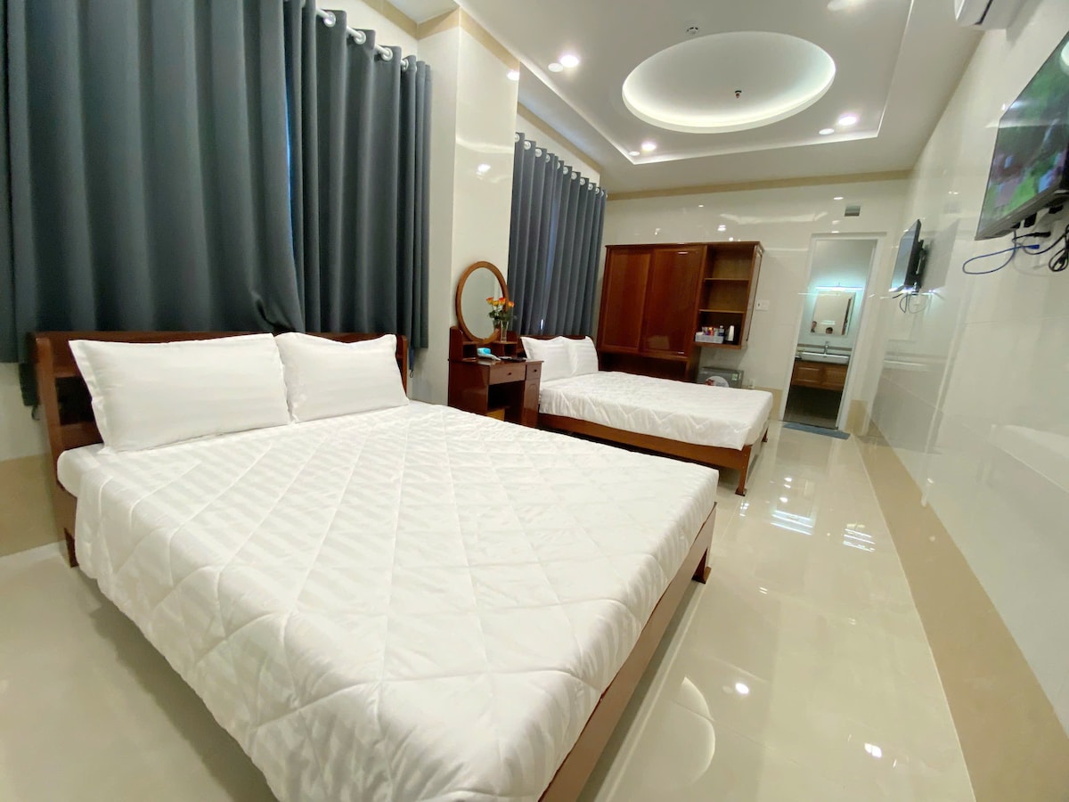 - Receção 24 horas, serviço de quarto para ajudar os hóspedes durante a estadia. - Há uma área de pátio para relaxamento, espaço de estacionamento e vista romântica para o mar. - Quarto moderno com ar condicionado, acesso Wi-Fi gratuito, televisão de ecrã plano e janela com vista para o mar. - Esta é uma boa escolha se quiser um hotel perto do mar, comodidades completas, espaço relaxante quando vier a Phuoc Hai – Vung Tau. - Bebidas mistas de cortesia no bar