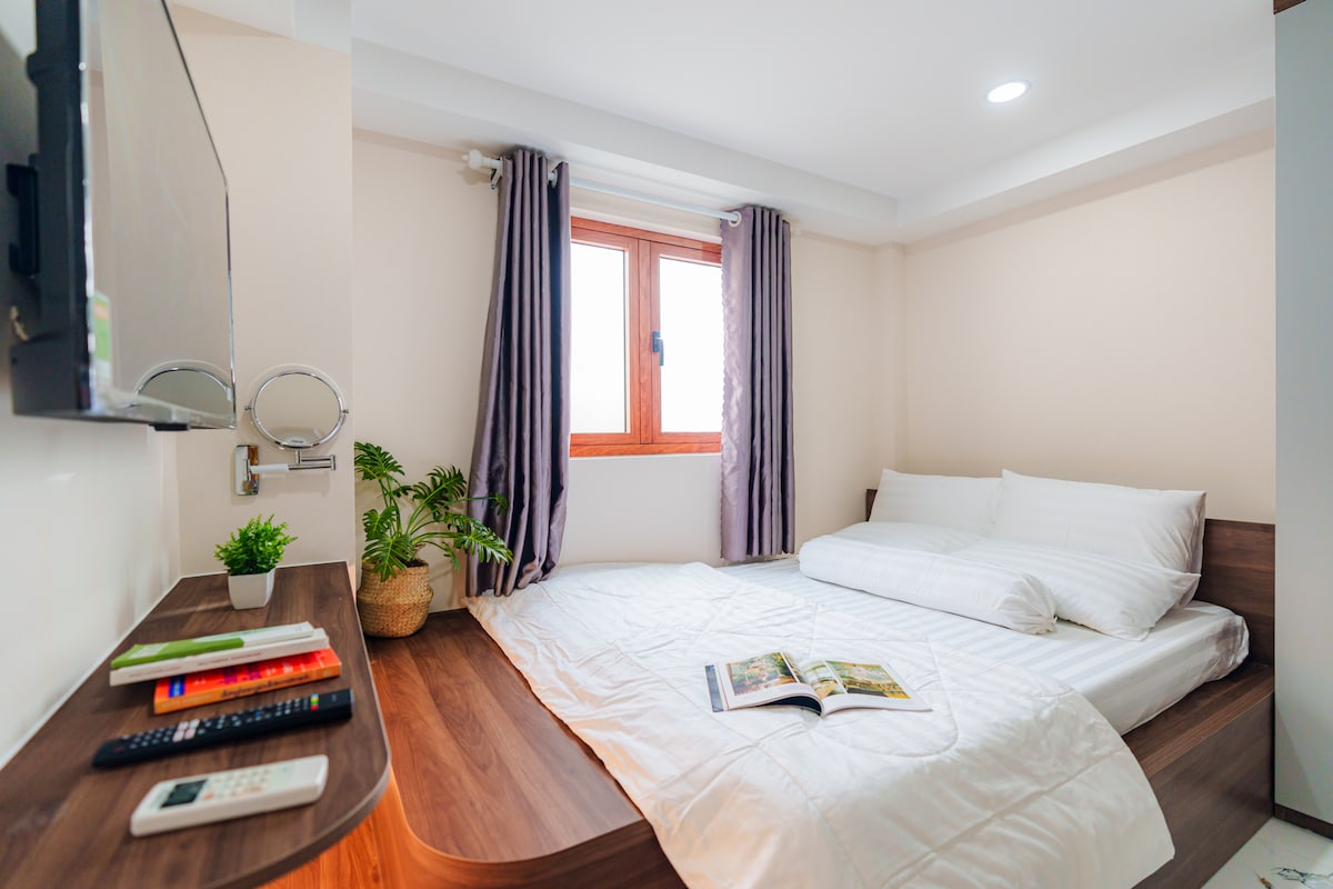 Este é um estúdio pequeno, mas acolhedor e moderno, a apenas 05 minutos do Aeroporto Tan Son Nhat, localizado em uma área residencial tranquila e segura. Totalmente equipado com ar condicionado, uma cozinha pequena, um espaço de trabalho e uma grande TV inteligente, oferece uma estadia tranquila. Desfrute de check-in/check-out flexível com um sistema de porta automatizado privado. A apenas 20 minutos de táxi da Rua de Caminhada Nguyễn Huệ e perto de restaurantes locais e do Parque Hoang Van Thu para exercícios matinais.