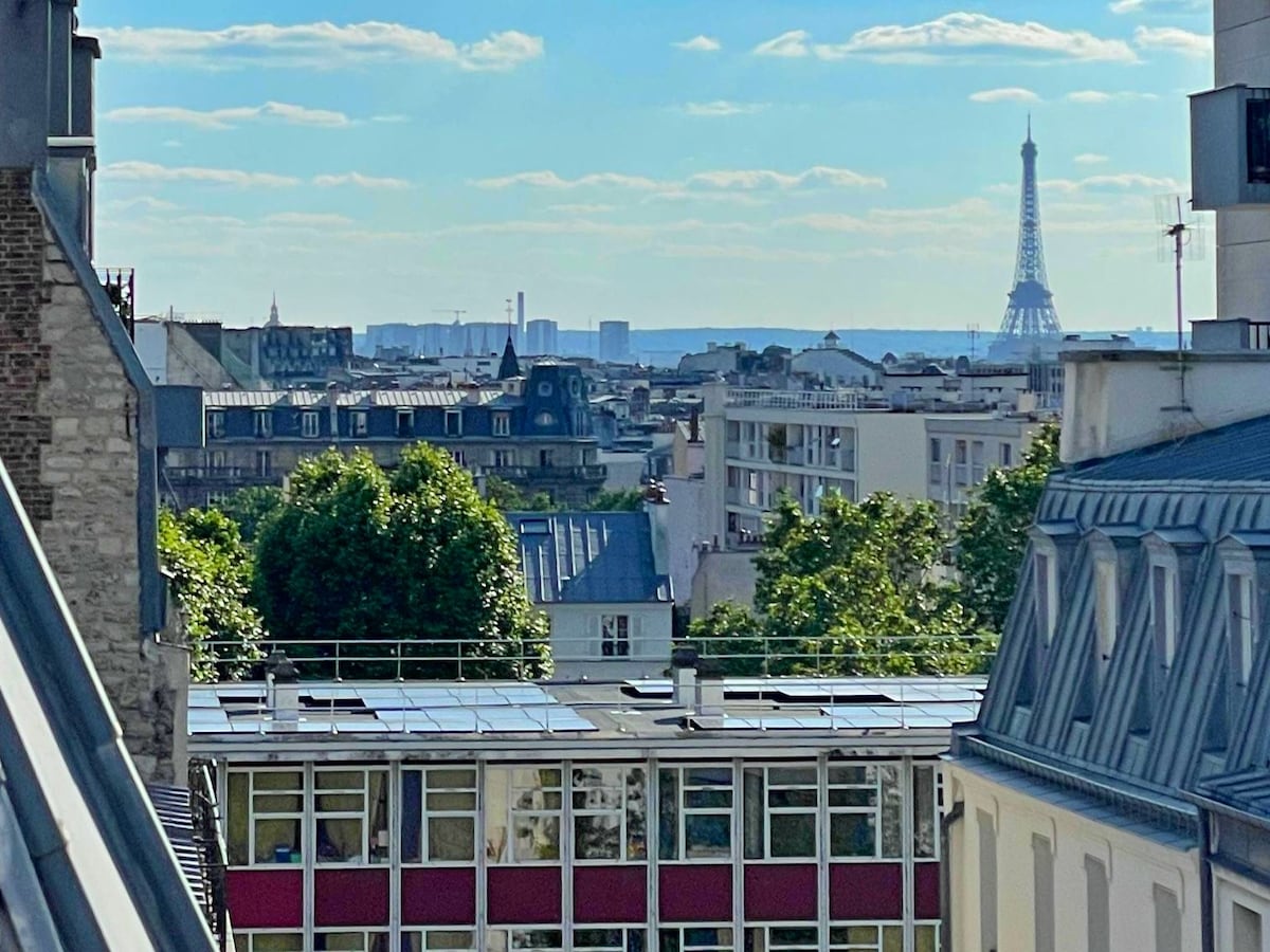 À deux pas du canal Saint-Martin, côté Goncourt, cet appartement offre une parenthèse parisienne haut de gamme. Entièrement rénové, il mêle finitions premium, cuisine contemporaine effet marbre, parquet clair et décoration artistique aux lignes urbaines. Baigné de lumière, il dévoile une vue dégagée sur les toits de Paris avec la Tour Eiffel en perspective. Un cocon élégant au cœur d’un quartier vibrant, chaleureux et créatif.