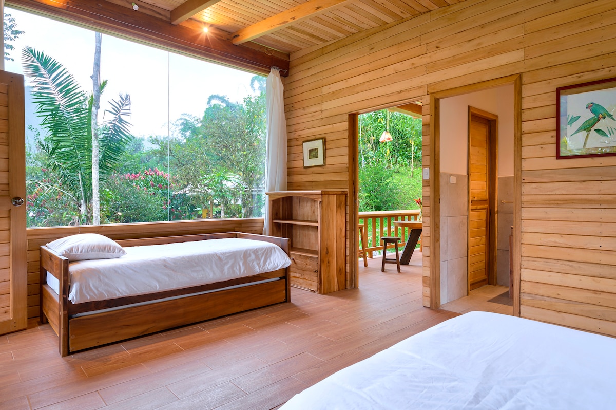 Cabana de luxo: trilhos, cascatas, ioga, sauna, floresta