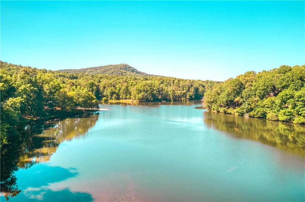 Vista deslumbrante para o lago em Big Canoe, praia, clube