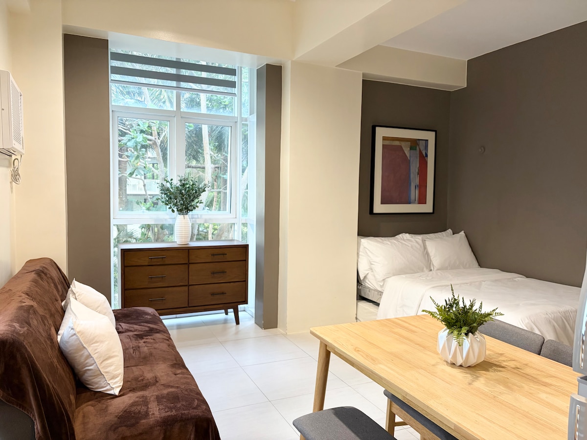 *Pode acomodar até um máximo de 10 pax APENAS! *Pode cozinhar/trazer comida para dentro da unidade * Vista para a lagoa *Comodidades do quarto: - Wi-Fi de fibra até 300mbps - Varanda. -Split type Aircon -Linen fornecido - Casa de banho com aquecedor de chuveiro - Cabo de TV/satélite - Dispensador de Água -Ref - Fogão elétrico com forno - Micro-ondas - Fogão de arroz - Chaleira elétrica - Utensílios de cozinha completos e comodidades para refeições Observação: *Traga toalhas e produtos de higiene pessoal *Por favor, note que os hóspedes são obrigados a pagar uma taxa de entrada única diretamente à propriedade