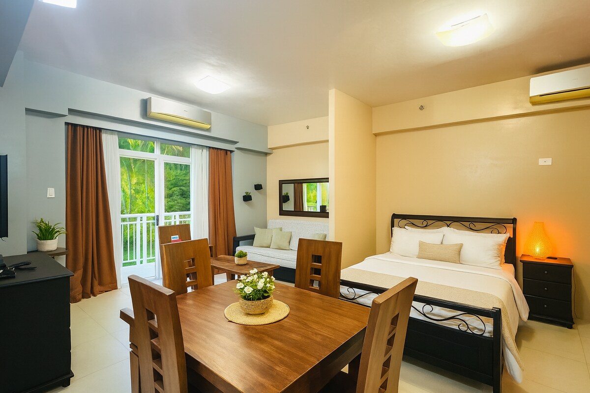 The place is close to the beach as well as the country club pool where you can relax in the peaceful surroundings of the resort that it can offer. You’ll love the place because of the balcony overlooking the green mountain, the nice kitchen, the 42” TV with Bose Sound Pad, enjoy watching your favorite programs through Netflix, YouTube and or connect with your friends through your gadgets through the free WI-FI in the room.