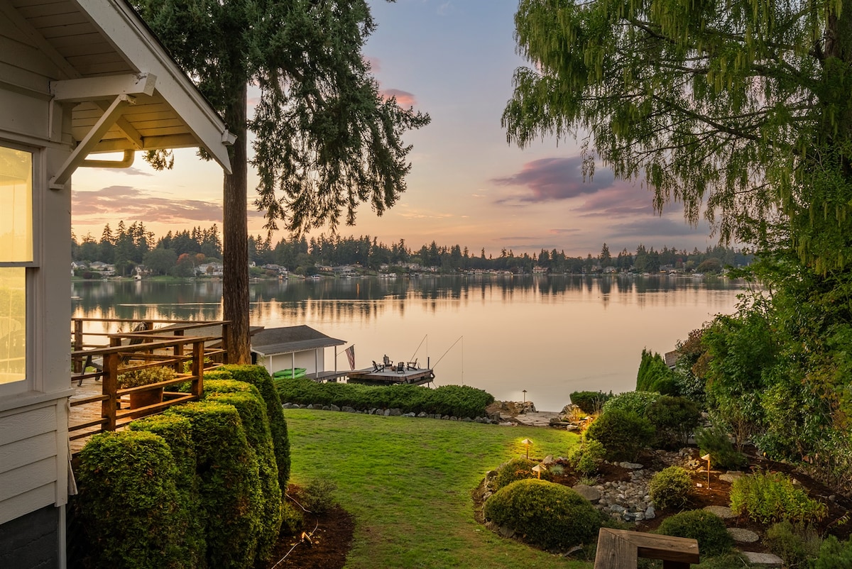Casa de campo à beira do lago Tapps com vista para o Monte Rainier