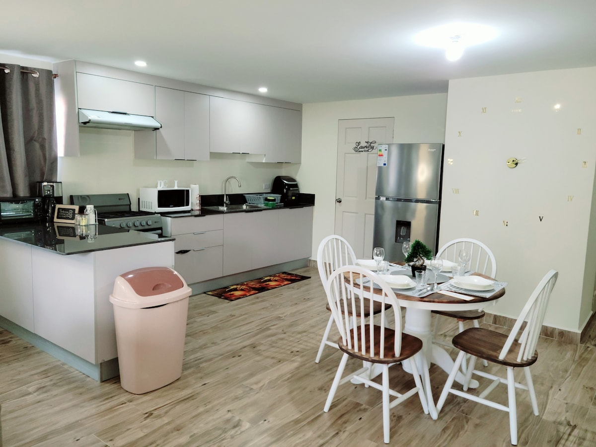 Este lugar único tem um estilo próprio. Se você já quis estar no centro de tudo, mas em seu próprio refúgio dos sonhos, este elegante apartamento estúdio moderno é perfeito para você. Localizada no último andar da arquitetura distinta do D 'Colluseum Mall em Crown Point, Tobago, esta unidade tem acesso às praias mais famosas de Pigeon Point e Store Bay Beach e sua própria academia interna, para manter essa figura tonificada. Quer criar um clima frio? Basta perguntar a Alexa.😉