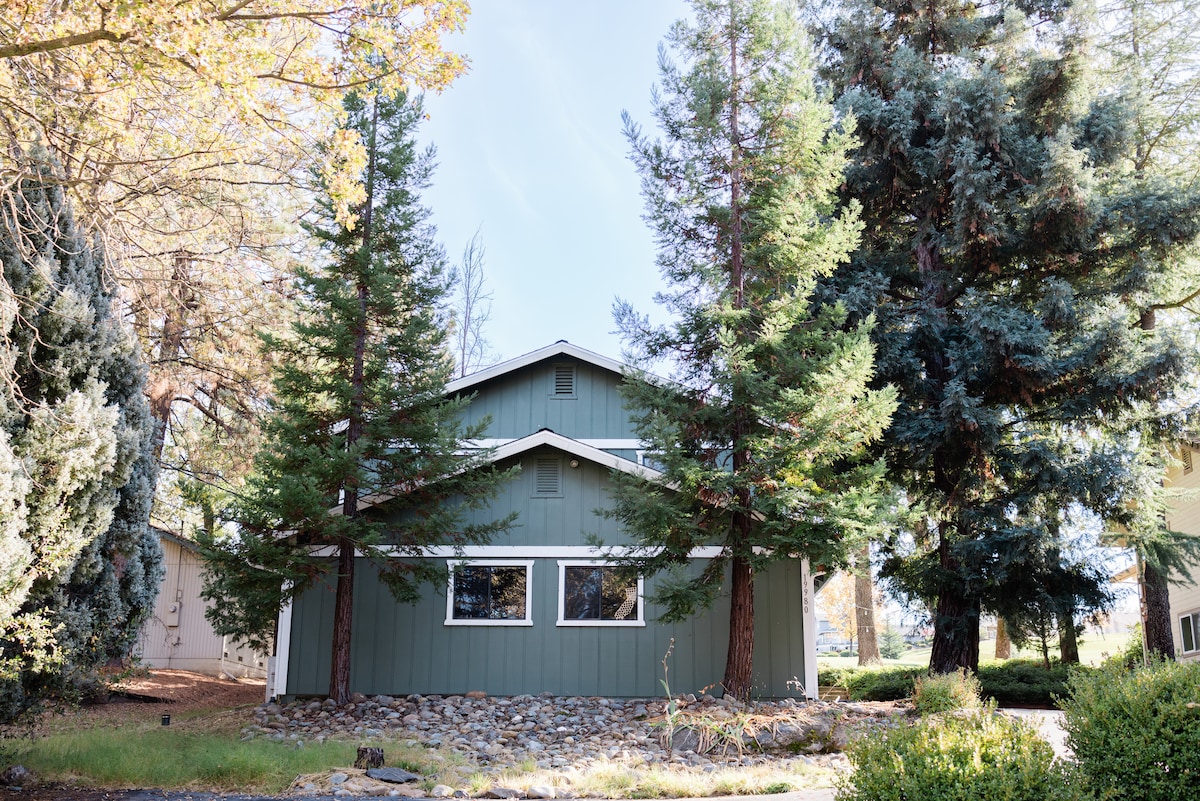 Comece a sua aventura em Yosemite no The Knotty Hideaway, uma acolhedora casa de hóspedes de 400 pés quadrados em Pine Mountain Lake, a 26 milhas da entrada norte do parque. Perfeito para um casal ou um casal com filhos pequenos, tem uma cama queen + sofá-cama. Relaxe no deck com vista para a floresta, aconchegue-se junto à lareira ou contemple as estrelas sob o céu da Serra. O seu retiro tranquilo na montanha espera por si. Somos amigos dos cães! ✨Precisa de mais espaço? Veja o nosso anúncio de 2 camas/2 casas de banho: airbnb.com/h/theknottyhideaway-yosemite