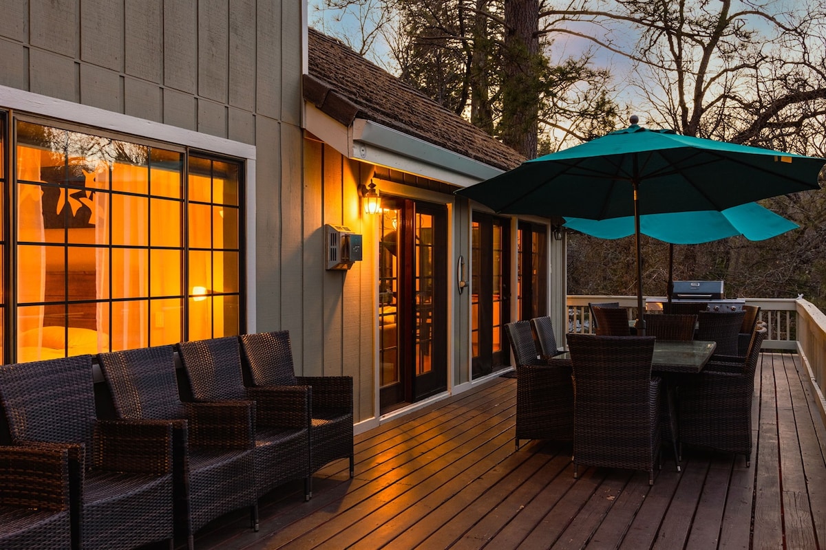 Depois de um dia ao ar livre, relaxe em um dos maiores AirBnbs em Pine Mountain Lake. Sua família e amigos podem se espalhar por mais de 370 metros quadrados de espaço de estar luxuosamente decorado, contendo as conveniências modernas necessárias. Desfrute de dois grandes decks com vista para o barranco/lago abaixo. Localizado em uma entrada tranquila longe de todas as multidões, você terá acesso (250 degraus abaixo de uma colina mais íngreme) a um cais privado no lago com caiaques, trilhas de caminhada nas proximidades, natação, tênis, golfe, pesca e passeios de um dia para Yosemite.