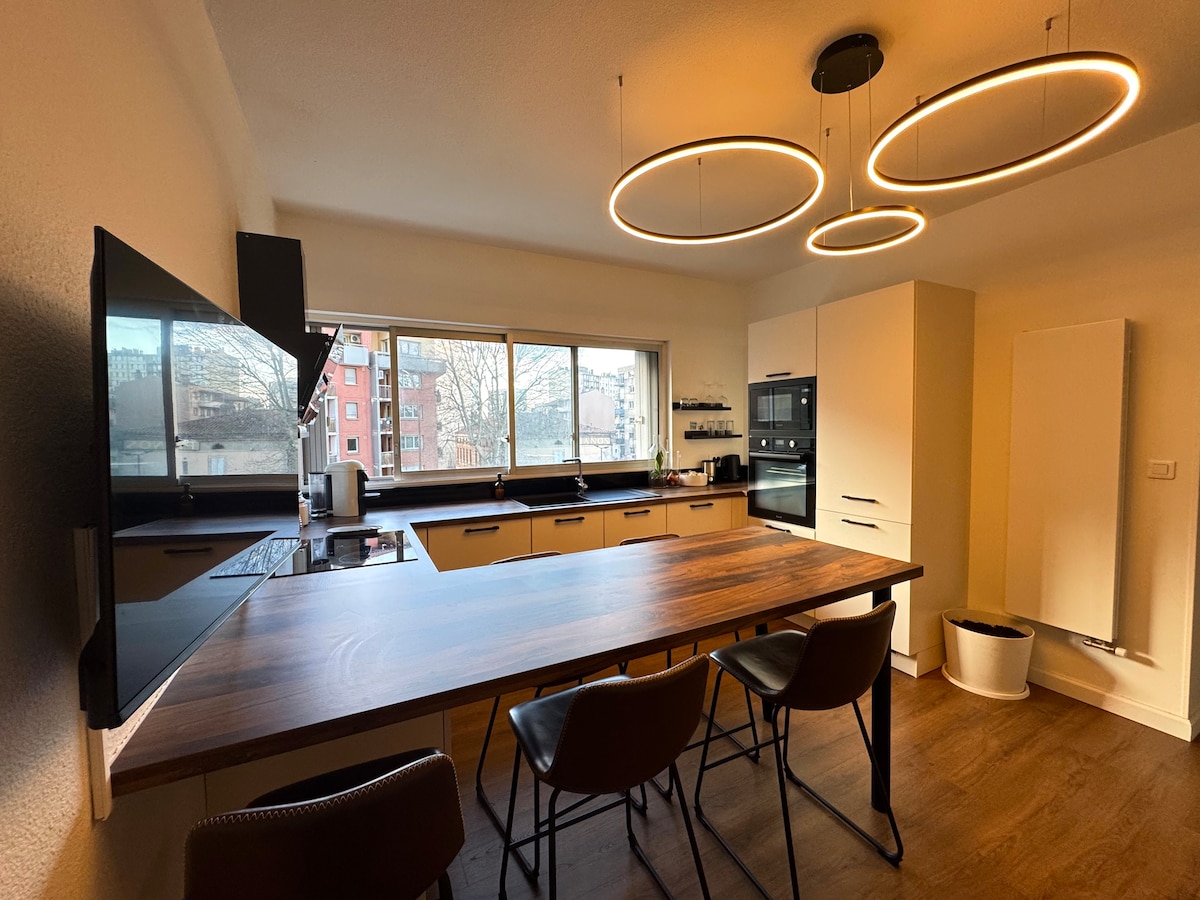 Descubra este apartamento de 130 m² com design moderno e charmoso, ideal para uma estadia de curta ou longa duração para 4 pessoas. Aproveite este lugar relaxante para vir e descobrir a região. O apartamento está localizado no 1º andar de um edifício do século XIX, às portas de Lauragais, no coração histórico de Castanet-Tolosan.