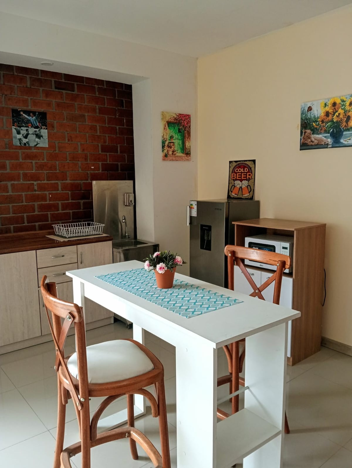 Apartamento pequeno e acolhedor 34 Mts2 , está localizado a apenas 5 milhões de Pisco no centro da cidade e a 15 minutos de Paracas Este apartamento bem iluminado fica no edifício do segundo andar, um bom quarto para relaxar com 01 cama de casal , ventilador e cozinha e sala de jantar totalmente equipada. Meio quarteirão da avenida principal de Pisco, é por isso que a janela do quarto tem vidro duplo para garantir que descansa bem ,também tem acesso direto a Paracas e à autoestrada Panamericana Sur