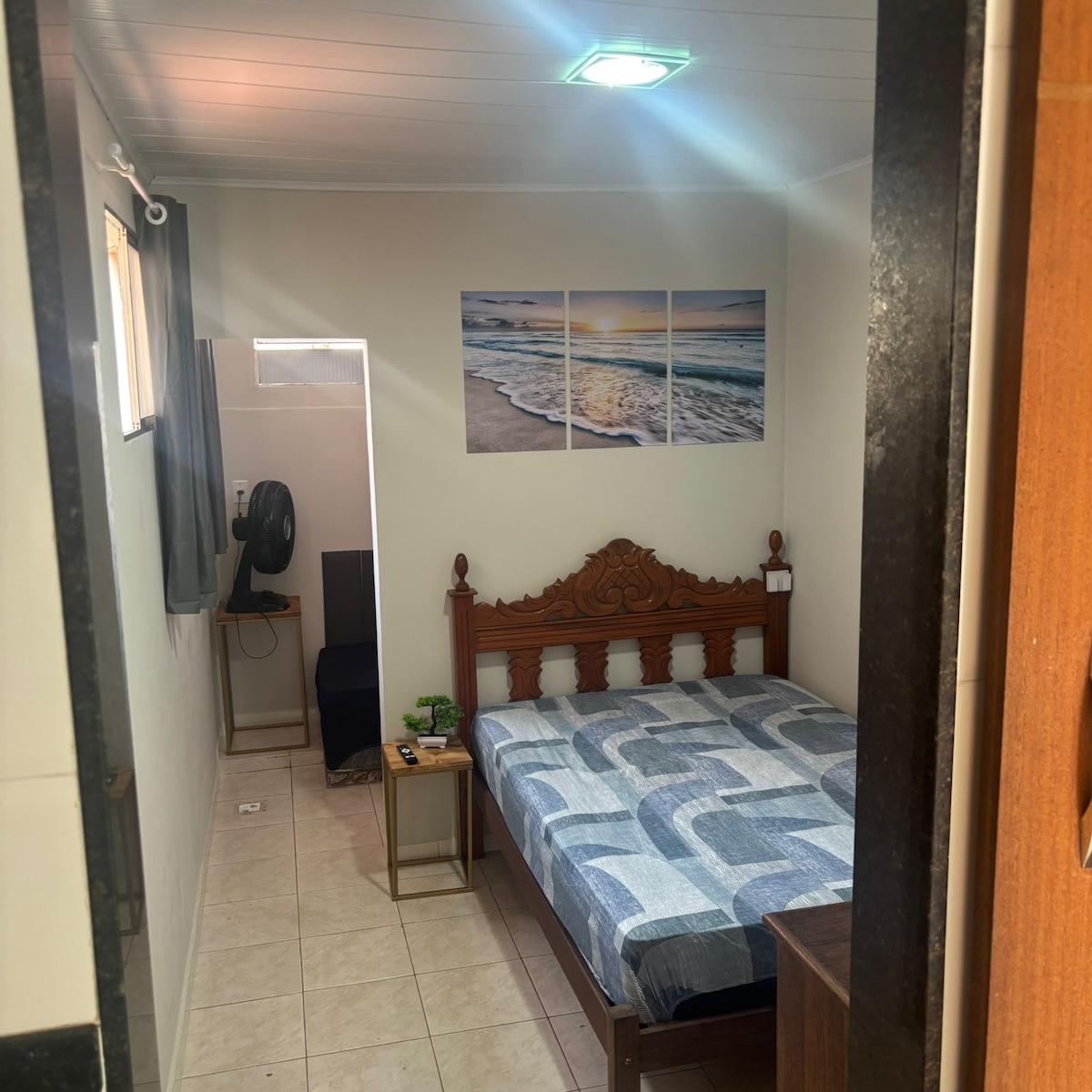Aproveite sua estadia em nossa casa com dois quartos, sendo uma suíte com cama de casal, banheiro social, outro quarto com 1 cama e 1 bicama (ideal para as criancas). Temos uma área externa com churrasqueira elétrica para sua praticidade, uma garagem que pode acomodar até 3 carros, e uma cozinha equipada com utensílios essenciais para sua estadia (airfyer, cafeteira, misteira, liquidificador e muito mais). Ficamos em uma rua calma e tranquila, apenas a 6 quarteirões da praia.
