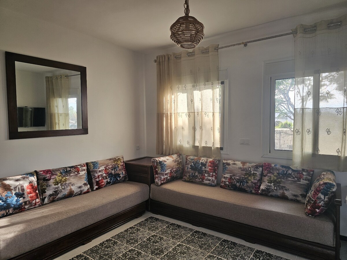 Linda moradia de segunda linha de frente para o mar. - Ar condicionado disponível - Localizado no coração do complexo privado e seguro da Bahia Smir, a moradia está totalmente equipada, com acesso direto à praia (2 min). Moradia composta por 3 quartos grandes, incluindo um com terraço com vista para o mar. Um terraço totalmente mobilado também está disponível. A cozinha inclui um pátio de serviço. Uma sala de funcionários também está disponível. Vaga de estacionamento disponível. / Wi-Fi disponível.