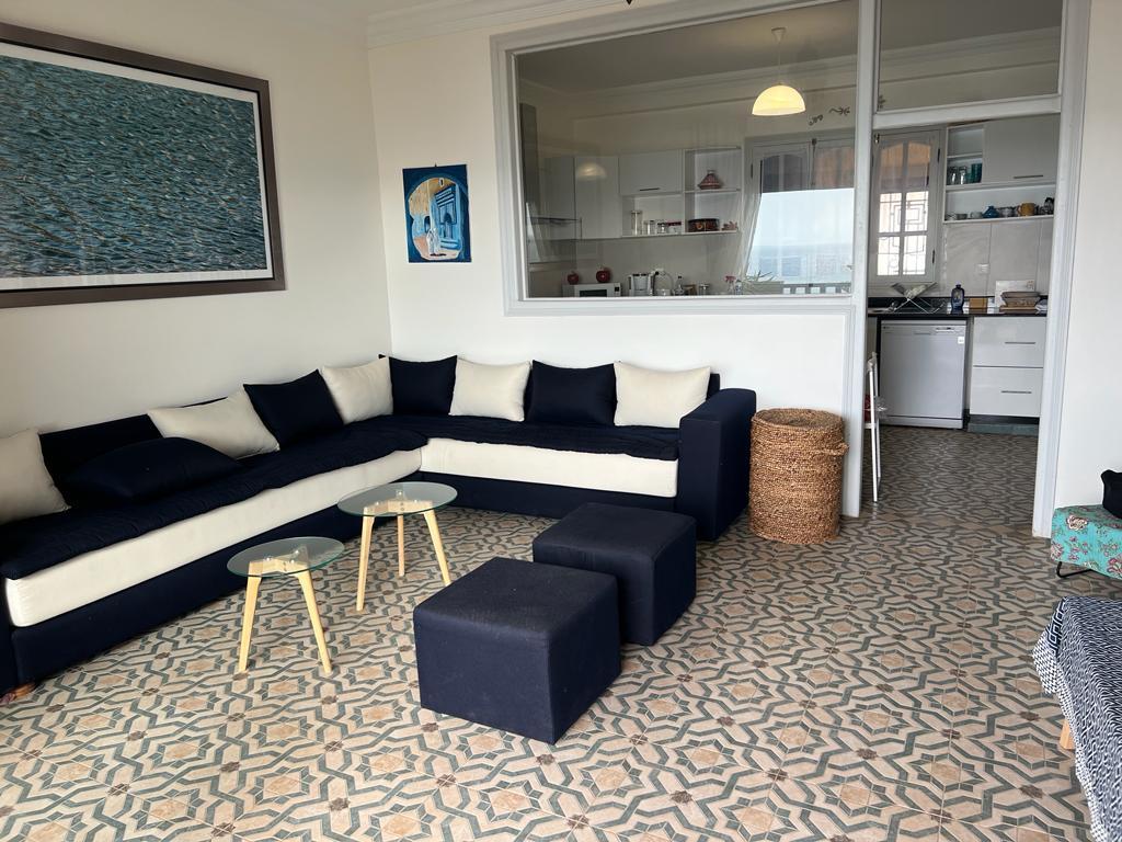 Magnifique appartement avec vue panoramique sur la mer, idéal pour un séjour relaxant entre confort et élégance. Cet appartement spacieux et lumineux se compose de : 2 grandes chambres confortables 1 lit King size 1 lit double (180 cm) Un grand salon avec vue sur mer à 180°, baigné de lumière naturelle Une cuisine américaine moderne entièrement équipée Une salle de bain avec douche à l’italienne Parking privé sécuriser en sous-sol, agent 24/7, camera de surveillance, accès contrôlé avec bip