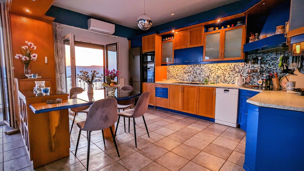 Escape to the charming village of Pyrgadikia, where Bellevue – Panoramic Seaview Penthouse awaits you. Nestled in the picturesque Sithonia bay in Chalkidiki, our holiday penthouse is designed to take full advantage of the beautiful views, with large windows and glass doors that open onto three balconies offering panoramic views of the Aegean Sea and the Holy Mountain of Athos.