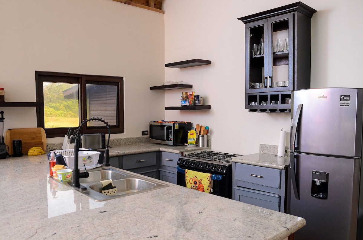 Relájate y diviértete en familia en esta Eco A-frame Villa! Ubicada en el Parque nacional Jeanette Kawas, podrás disfrutar de una experiencia única rodeado de naturaleza, esta villa es abastecida de energía solar, y cuenta con generador de respaldo. Cuenta con 3 cuartos cada uno con baño privado, un ático con escaleras retractables, en el exterior un cuarto con su baño, tiene área de barbacoa y horno para pizza, en el área trasera tiene un muelle. El vigilante supervisa la propiedad las 24h