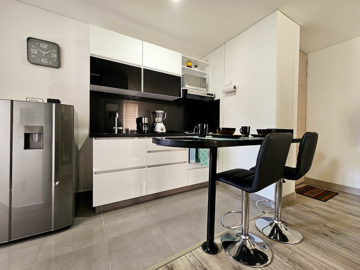 Loft deslumbrante com vista deslumbrante para a cidade e a montanha. Delicie-se com a cama mais luxuosa do edifício, proporcionando um nível de conforto semelhante a um hotel cinco estrelas. Almofadas de pelúcia garantindo o melhor sono da sua vida. Desfrute de uma TV de 60" com Netflix, uma cozinha bem equipada e relaxe na poltrona reclinável perto da janela. Chuveiro de água quente, secador de cabelo, amplo espaço no armário e uma área de trabalho perfeita. Próximas comodidades: cobertura, coworking, academia. Perto da estação Transmilenio. Reserve agora para uma estadia inesquecível