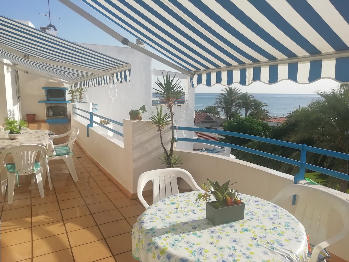 Cobertura minimalista na Playa de las Marinas, na linha da frente (não há edifícios em frente ao edifício), recentemente renovada, localizada a pé da praia arenosa na melhor área de Dénia, com vista privilegiada para o mar a partir da sala de estar e do quarto principal. Tem um quarto duplo e dois quartos duplos, todos com acesso ao terraço exterior. Tem ar condicionado/bomba de calor, Wi-Fi, parque infantil, área de estacionamento, restaurante. ALOJAMENTO TURÍSTICO VT-456986-A