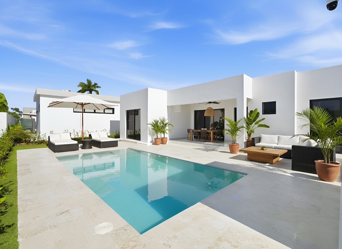 Entre numa moradia de luxo recém-construída na costa, na Sosúa Ocean Village fechada. Concebido para uma vida elevada, este retiro sereno tem duas espaçosas casas de banho privativas king-size e um escritório privado com um ginásio em casa. Perfeito para hóspedes que querem viajar, trabalhar, relaxar e treinar sem problemas. Acabamentos modernos, ambiente tranquilo e conforto ao estilo de um resort criam o equilíbrio perfeito entre produtividade e relaxamento. Reserve 4 noites e ganhe 1 noite grátis, mencionando este anúncio.