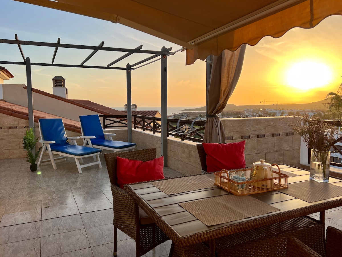 Welcome to our fully refurbished studio with an impressive ocean view, close to beautiful beaches and surf spots. Equipped with fast Wifi, smart TV, fully supplied kitchen, wonderful shower, washing machine and all comforts. Guests have free access to the swimming pool. The bus and taxi station is right in front of the studio. There are supermarkets and shops in front of the studio. Just 5 minutes walk from Playa de las Américas, 8 from Playa de Troya. 15km from the airport.