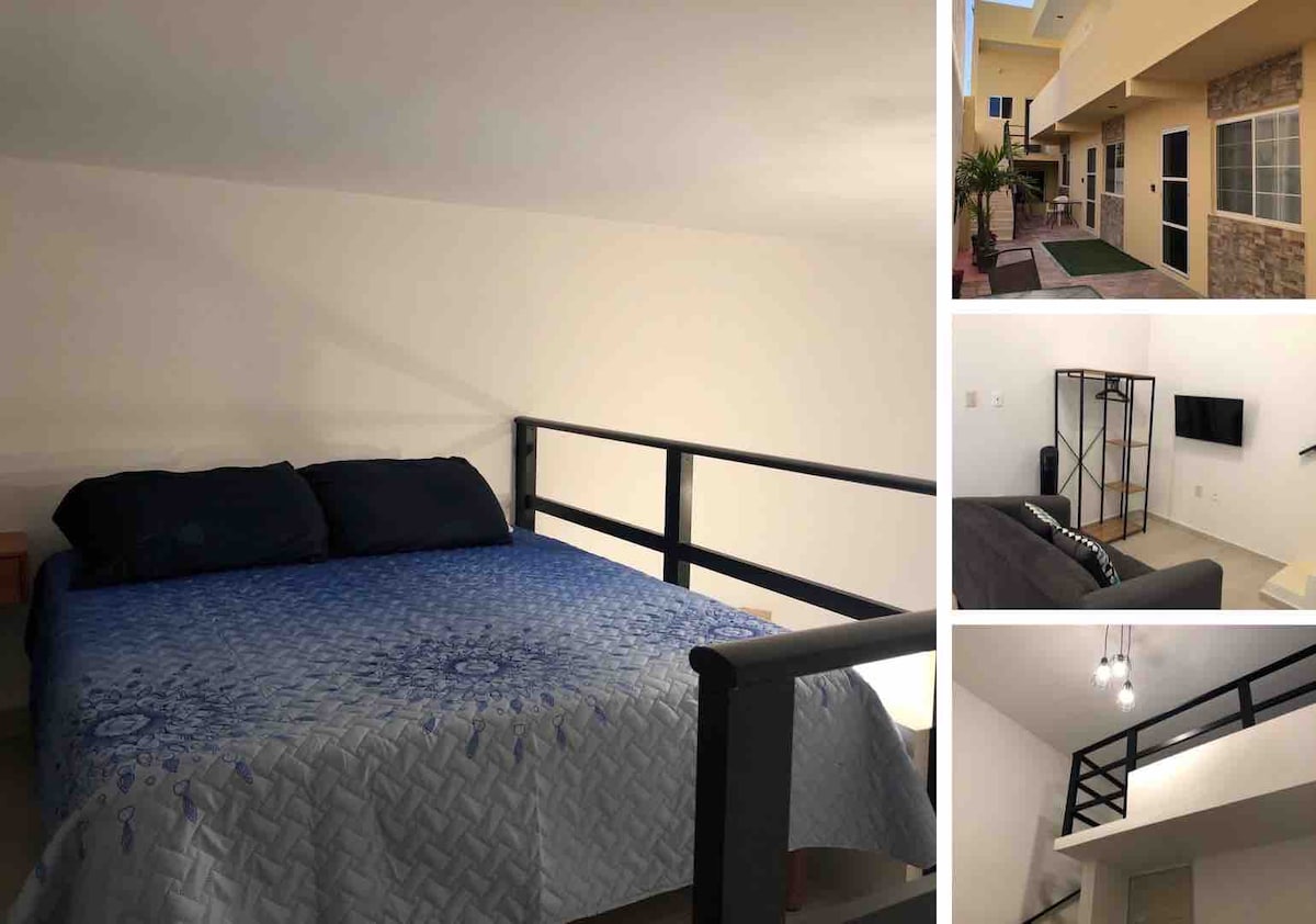 Belo Loft no centro da cidade, estilo caribenho, num tranquilo edifício de 8 apartamentos. Rodeado por uma área verde com uma pequena piscina acolhedora. A apenas quatro quarteirões da praia. Perto de muitos locais para almoçar ou beber à noite. O Loft fica no primeiro andar, tem uma casa de banho com chuveiro, cozinha e uma área de sofá que pode acomodar mais uma pessoa, e o quarto fica no andar de cima: tamanho Queen confortável e um pequeno armário. O Loft é bem mobilado, estilo mexicano moderno, com toques de madeira tropical.