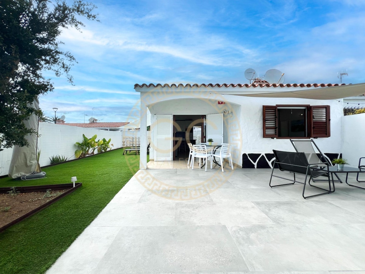 Lovely calm independent house, with bright garden few step by one of the four swimming pools of an extremely quiet and safe residential complex (Los Arcos) in the center of Playa del Ingles, Maspalomas. Fully renovated and freshly decorated, this home is the ideal place for a relaxing holiday in the sun of the South of Gran Canaria. The house is located few steps from Yumbo Centrum and 10 minutes walking to the beach and to the dunes of Maspalomas.