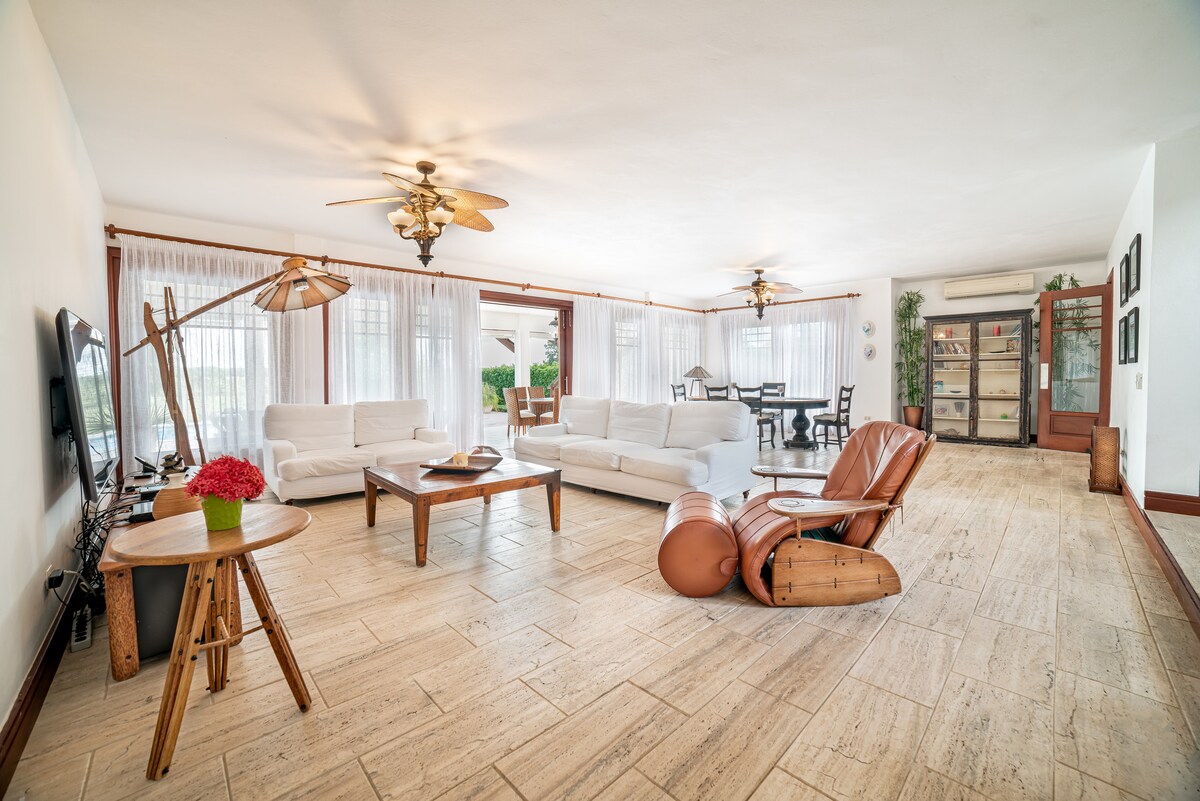 Located within world-renown Casa de Campo resort in the Dominican Republic. It has a very open layout and minutes from the beach, golf, tennis, and restaurants. The neighborhood is quite private and the resort is a gated community. NOTE: Property includes two staff that do housekeeping and cooking from 8:30a to 4p daily. Golf cart rentals and dinner prep are extra. The Casa de Campo Resort charges an additional $30 daily, per person fee. Please read: https://www.airbnb.com/help/article/3064