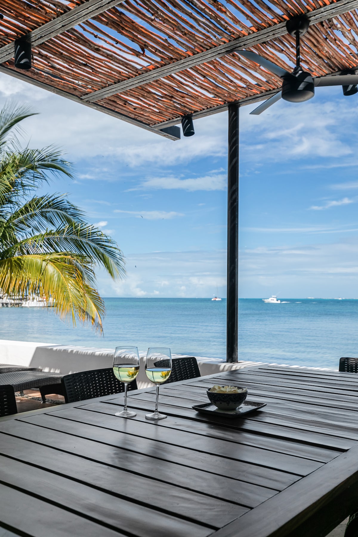 Acorde com a vista mais deslumbrante de águas azul-turquesa cristalinas do Caribe mexicano neste lindo condomínio de 1 quarto à beira-mar localizado no piso térreo do Sotavento - sem escadas/fácil acesso. Fornecido: tapetes de ioga, pesos de ginástica, equipamento de mergulho com snorkel, brinquedos de praia, jogos de tabuleiro, cesta de piquenique, cama de massagem, suporte de piso para roupas, vaporizador de roupas, suporte de bagagem. A uma curta distância a pé de muitos restaurantes/clubes de praia. **OS PREÇOS VARIAM AO LONGO DO ANO, PORTANTO, VERIFIQUE O PREÇO PARA SUAS DATAS DE RESERVA**