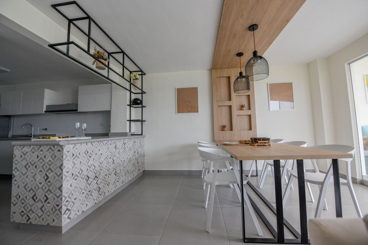 Desfrute de uma estadia tranquila e própria para famílias à beira-mar. O nosso apartamento de 180 m² para 10 pessoas oferece vistas panorâmicas para o mar a partir de todas as divisões, um terraço com poltronas, uma piscina e um grelhador. Ideal para relaxar com a família, amigos e o seu animal de estimação =). Para a praia: inclui toldo de praia, guarda-sol, cadeiras e pás. Km 124,6, Praia dos Golfinhos, entre a Praia Honda e Lobos; a 25 min do Boulevard de Asia e a 10 min de Cerro Azul.