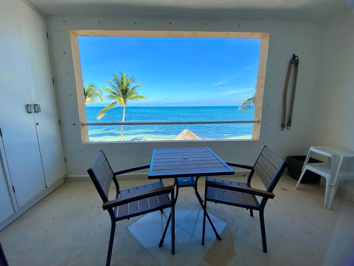O estúdio está localizado na melhor área de praia em Cancún, você vai desfrutar de sua espetacular vista para o mar do Caribe com suas águas azuis! É bem na praia com fácil acesso. É bom para casais, aventureiros solitários e famílias (com crianças), melhor para no máximo 4 adultos e uma criança. Tenho o contato para que você possa fazer o teste de COVID para voltar para casa e ficarei feliz em ajudar.