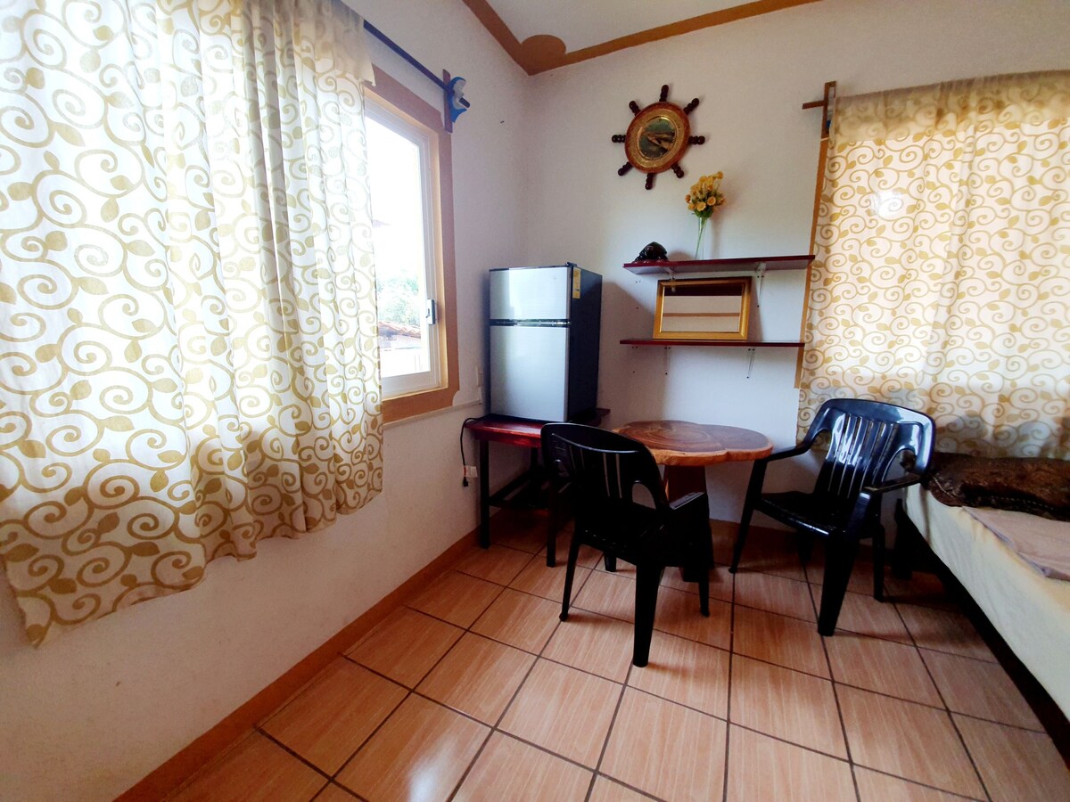 Estamos localizados no tranquilo bairro de Bacocho, a uma curta caminhada ou táxi de distância da Rinconada. Esta área tem muitos restaurantes e lojas ótimos e belas praias. Este grande estúdio no piso principal acomoda confortavelmente 2 pessoas. Possui uma cama queen size, geladeira, cafeteira e utensílios básicos. Relaxe no pátio privativo ou na nossa área comum da piscina. Ar condicionado disponível por um valor adicional. Temos uma cozinha comum no terceiro andar que oferece vistas deslumbrantes para o mar e belos pores do sol.