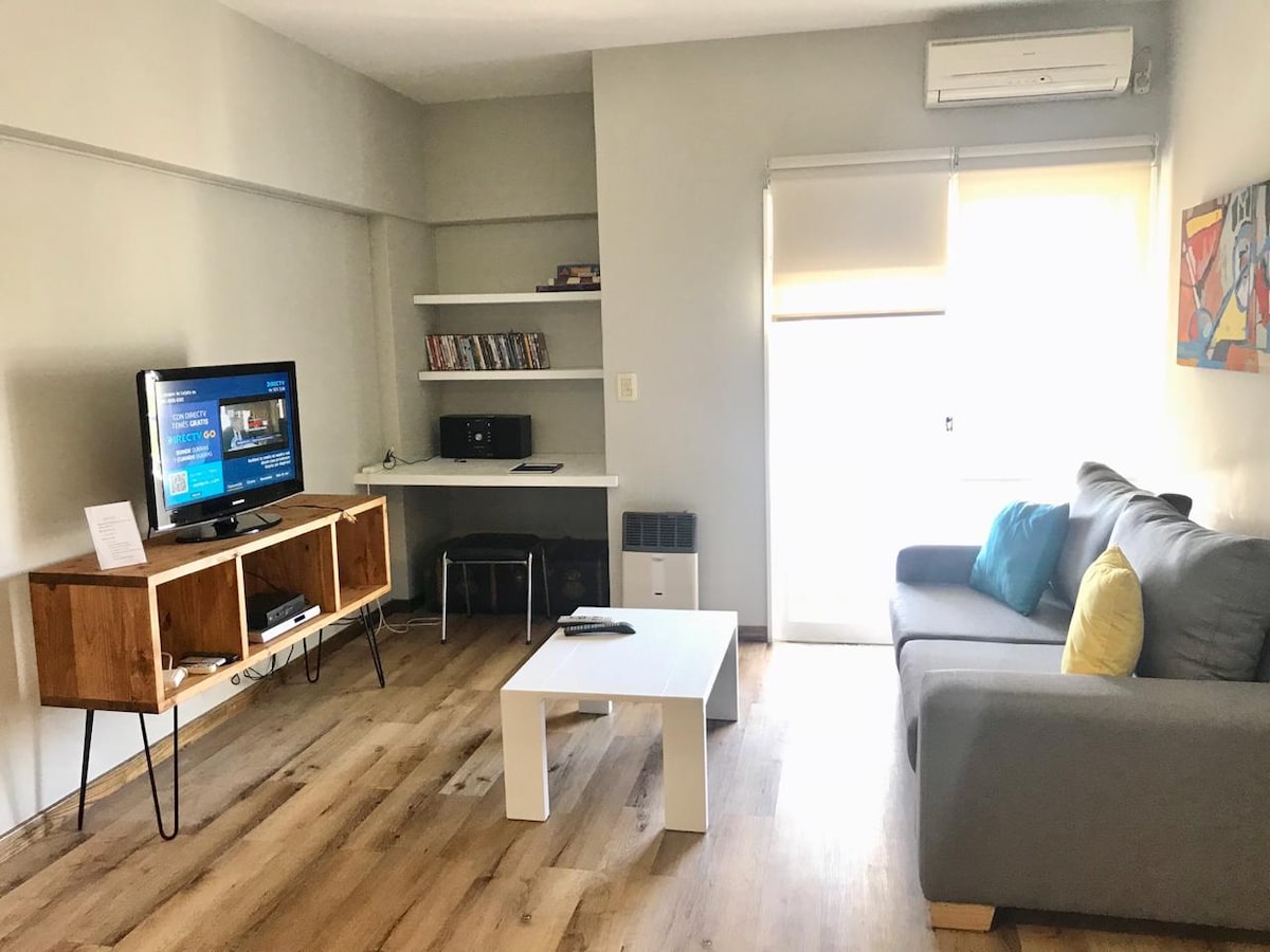 Apartamento totalmente reformado. Em uma das áreas mais exclusivas do centro da província de Mendoza. A 6 quarteirões da divertida rua Aristides Villanueva, a 250 metros da Peatonal. Rodeado pela beleza de todas as praças do centro da cidade. Sem dúvida, um alojamento ideal para casais e pessoas que viajam sem veículo. O apartamento é espaçoso e tem 2 ambientes. Cama 1,8m x 2m, TV a cabo, internet 50 Mb, geladeira, micro-ondas e chaleira elétrica.