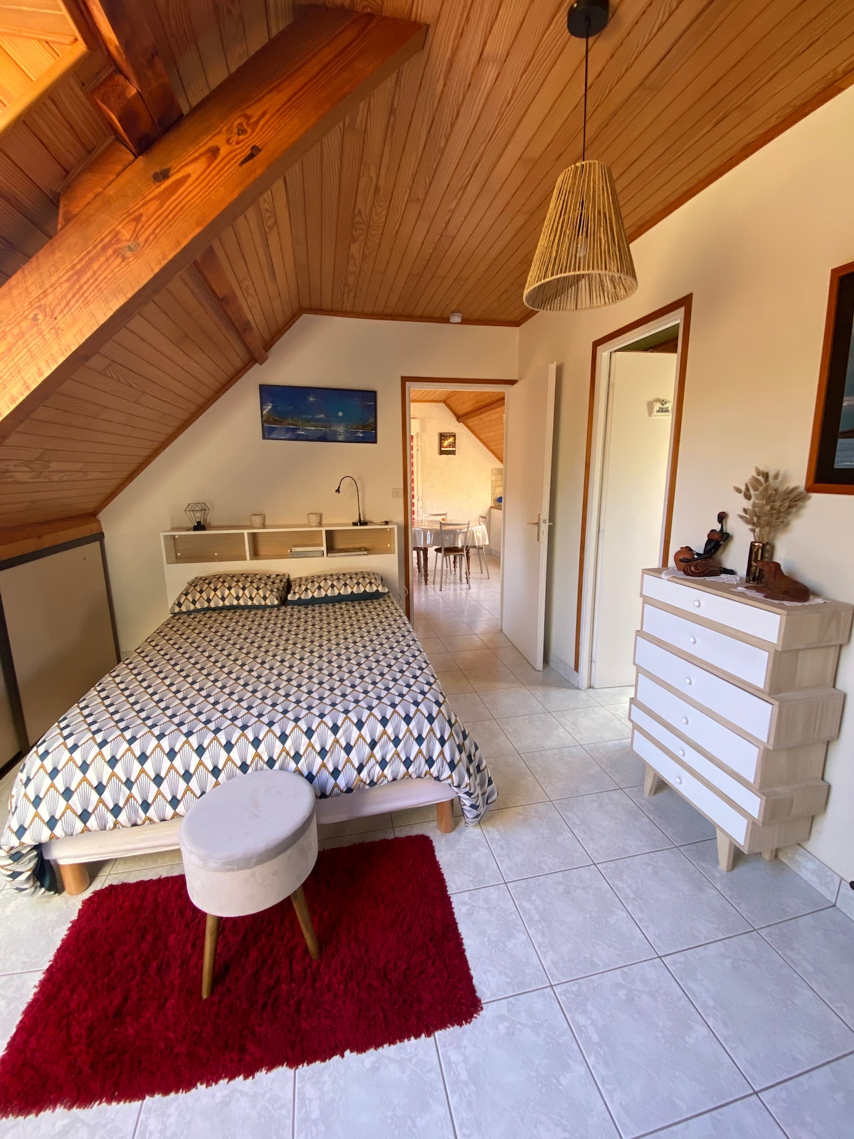 Apartamento encantador, com todos os confortos, localizado no andar de cima da nossa casa. É muito funcional, com cozinha equipada, banheiro privativo, entrada independente. Fornecemos roupa de cama e toalhas. "Pinta" pastor australiano está em liberdade na propriedade. Estamos na estrada para as praias, então não há mais trânsito no verão. Idealmente localizado a 10 minutos do mar. Perto de Carnac, Erdeven, Quiberon, Auray, Vannes, Lorient e do Golfo de Morbihan.