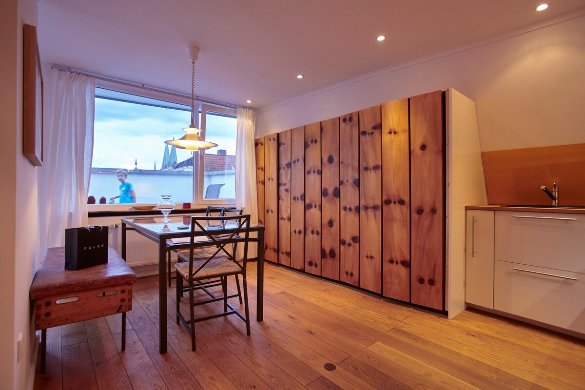 Uma grande e luminosa área de estar e jantar recebe-o no nosso apartamento loft com design amoroso. Três quartos separados, um com uma cama de casal (200 x 200 cm), oferecem cinco camas. A casa de banho tem uma enorme banheira com um chuveiro de efeito chuva. Os quartos estão equipados com mobiliário de designer especial. Na cozinha Bulthaup da classe mais alta, pode desabafar ao nível das estrelas. Um terraço coberto pertence ao apartamento. Instalação de carregamento para carros elétricos.