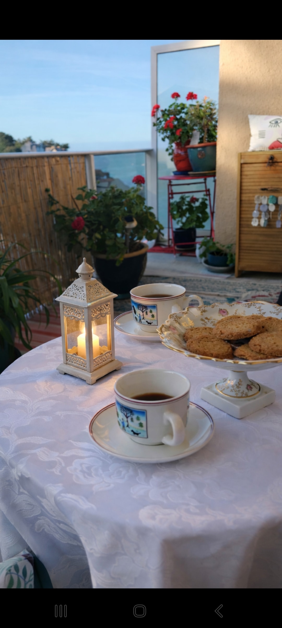 Vista para o mar e terraço florido – Praia e GR34 a pé