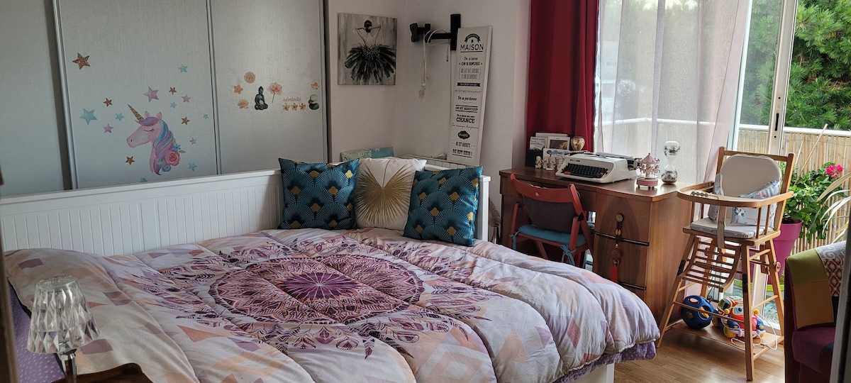 Bienvenue dans mon appartement calme et sécurisé situé au 2eme étage, grand balcon orientation ouest. Place de parking réservée dans une cour intérieure fermée par un portail. A 7 min à pied de la gare, 10 min à pied du centre ville (en passant par la passerelle). 10 min en voiture du port avec ses restaurants et ses bars. 2 min en voiture du parc des expositions Double vitrage et volets électriques. Résidence récente. Pas de frais de ménage