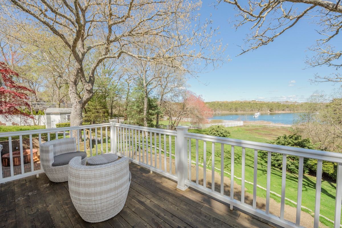 Perto do aeroporto, você vai adorar a praia do quintal, vista para a água, piscina/gramado, ambiente e espaço ao ar livre. Praia e piscina (AQUECIMENTO DA PISCINA COMEÇA NO VERÃO, TERMINA EM 01/09) é uma combinação difícil de encontrar!! A localização é privada, mas fica perto das 3 maiores cidades de Martha's Vineyard. Ótimo para casais, famílias (com crianças) e grandes grupos. Desfrute do jantar com o sistema de música Sonos interno/externo durante um belo pôr do sol! NOTA: Aumento da taxa na alta temporada, piscina/spa é uma unidade combinada e SOMENTE aquecida no verão!
