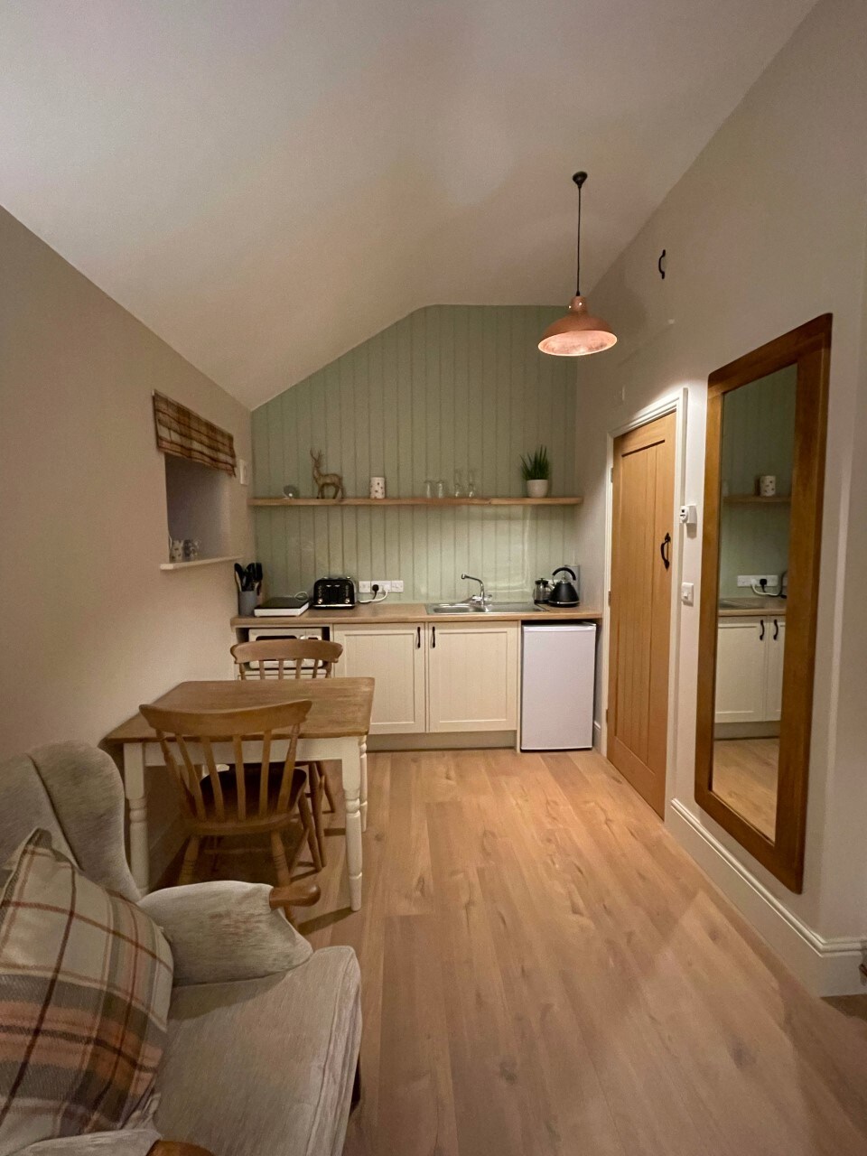 Dois edifícios antigos renovados foram convertidos em um quarto tranquilo, um quarto, auto-suficiente Garden room. No centro da vila de Slingsby, você está bem localizado para explorar as belas áreas circundantes de Yorkshire. Uma cozinha moderna com geladeira, micro-ondas e fogão está equipada para preparar refeições deliciosas. Uma televisão montada na parede com Netflix está disponível. A área de dormir abriga uma cama de casal com pendurador de parede para roupas, adjacente ao qual está um banheiro iluminado com toalheiro aquecido.