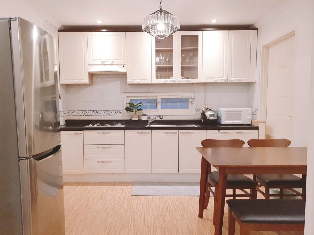 Olá, aqui é o Descanso # 1.☺️ Esqueça as suas preocupações neste espaço sereno e espaçoso.🍀 Esta casa tem acessibilidade e estilo, perto de atrações populares como o mar, Spacewalk e Jukdo Market. É um espaço especial onde pode desfrutar de um espaço feliz com💛 os seus entes queridos, amantes e amigos. 💛Consideramos a limpeza uma prioridade máxima para que os nossos hóspedes possam descansar confortavelmente. Cafés, lojas de conveniência e restaurantes Mulhoe ficam a 10 minutos a pé do 💛alojamento, para que possa usá-los confortavelmente. As crianças podem correr e brincar o quanto quiserem no pequeno parque em frente 💛ao portão. ✅ Uso exclusivo de toda a casa no 1.º andar ✅ 7 minutos a pé da praia, 10 minutos a pé, 2 minutos de carro, estacionamento Spacewalk ✅ Yeongildae Maritime Nugak, Jukdo Market, Mulhoe Restaurant, Cafe Street Depósito ✅ de bagagem gratuito Comida de ✅ boas-vindas (macarrão de chá) fornecida uma vez de acordo com o número de pessoas Os viajantes de negócios são bem-vindos ~ Por favor, entre em contacto connosco♡
