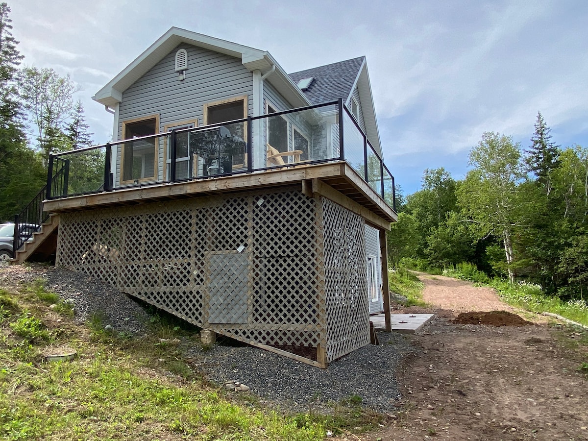 Perched high above Grand Étang, Cedar Peak offers sweeping views from highlands to ocean. Watch sunrise pour through the 13-ft window as you enjoy coffee in the open-concept living space. After a day of exploring Cape Breton, unwind on the panoramic patio at sunset. Purpose-built as a secluded, barrier-free chalet, Cedar Peak features a full kitchen, home theatre, and thoughtful comforts for an unforgettable stay.