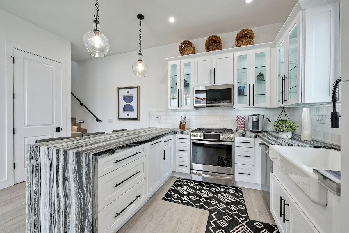 *** Point Loma***Cada quarto tem a sua própria casa de banho**Pátio no primeiro andar e varanda no segundo andar**Tetos abobadados de 10 pés***Máquina de lavar/secar roupa ***Churrasqueira***Fonte***Ferragens com acabamento preto mate Kohler***Bancadas em mármore italiano***Acabamentos de luxo de alta qualidade***Pisos de porcelana europeia**Portas de núcleo sólido em mogno de 8 pés***Estacionamento tandem atribuído para dois carros***A pé dos concertos Humphries By The Bay*** A casa está num bairro tranquilo com uma política respeitosa de horas de silêncio das 22:00. Não é uma casa de festas.