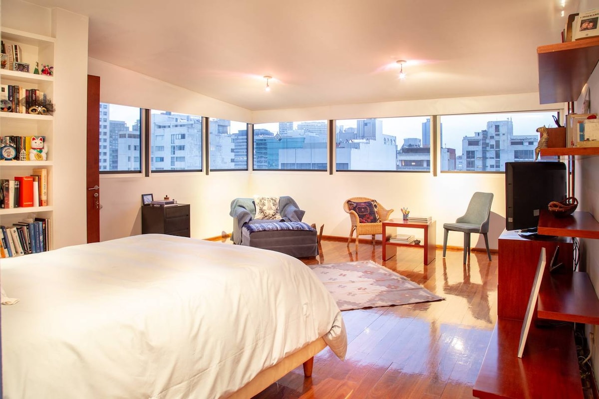 Apartamento aberto estilo loft em Polanco em uma rua tranquila, segura e bem iluminada. Idealmente localizado em um pequeno edifício tranquilo com vistas espetaculares cobertas de árvores com vista para a cidade. Ideal como um escritório em casa ou base para explorar a cidade. Você encontrará uma padaria e uma loja de vinhos no nível da rua e o Parque Chapultepec a poucos passos da sua porta. E os principais restaurantes, lojas, museus e muitas outras atrações a poucos minutos a pé.