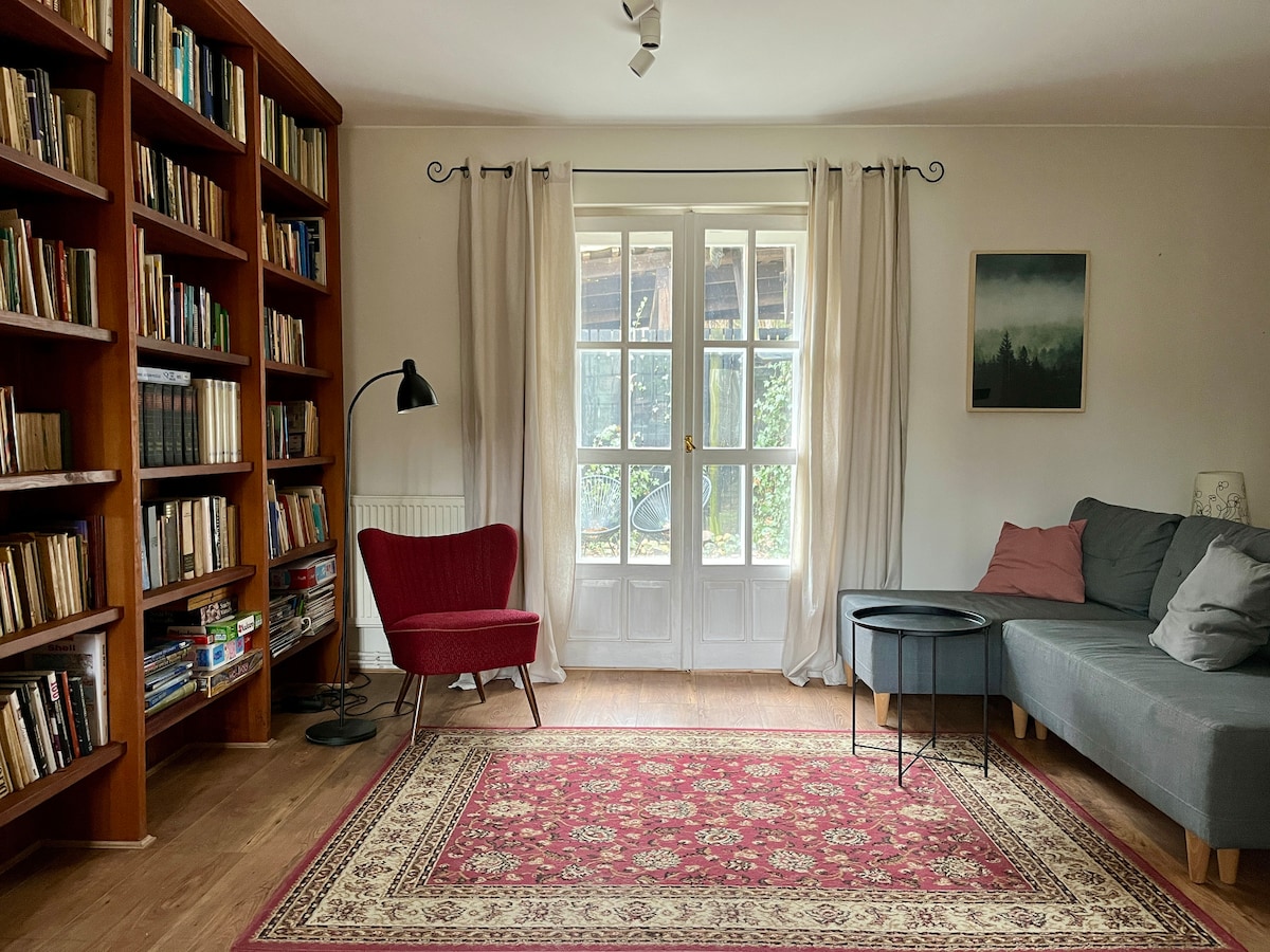 Se ainda não tem planos de férias e está a sonhar em recarregar as baterias, esquecer as preocupações diárias, ganhar paz interior e equilíbrio, seja bem-vindo. Uma casa de campo atmosférica, nos arredores da floresta, localizada no coração do Parque Paisagístico Tri-City, permitirá que desfrute plenamente do tempo passado com a família e amigos, os arredores garantem privacidade e conforto. O preço inclui alojamento para 6 pessoas, animais de estimação são muito bem-vindos,