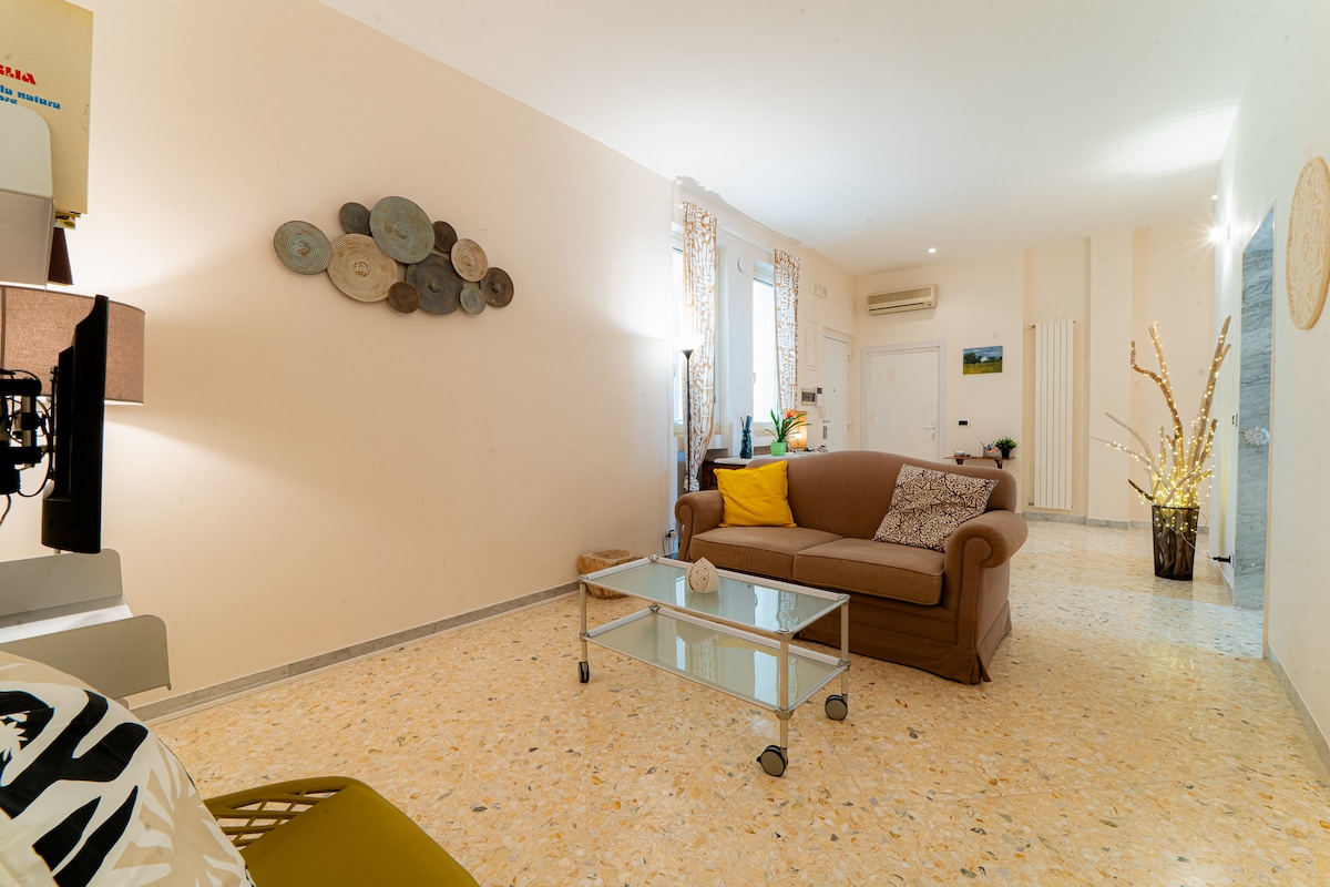 Apartamento de 106 metros quadrados com duas varandas, ideal para famílias ou grupos. - Quarto duplo com varanda - Quarto com 2 camas individuais e varanda de ligação com kitchenette - Sala de estar espaçosa e luminosa com sofá-cama, smart TV, estante, Wi-Fi - Casa de banho nova com chuveiro espaçoso Decoração vintage com toques modernos. Casa com localização central, perto de todas as comodidades e estacionamento gratuito nas imediações. A poucos passos do local de nascimento de Domenico Modugno.